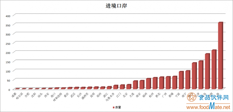 據(jù)統(tǒng)計(jì),這些未準(zhǔn)入境食品進(jìn)境口岸涉及上海、深圳、青島、天津、廈門(mén)、南寧、寧波、黃埔、廣州、拱北、杭州、福州、南京、大連、北京等30多個(gè)城市。各口岸未準(zhǔn)入境食品數(shù)量如下圖。